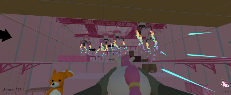 Our team’s brief contained only one thing – we had to create a first-person shooter. The rest was up to us. I pitched the idea of doing something unexpected and making everything a pink, cupcake-filled childhood fantasy game and as a team, we brainstormed to create the final concept.